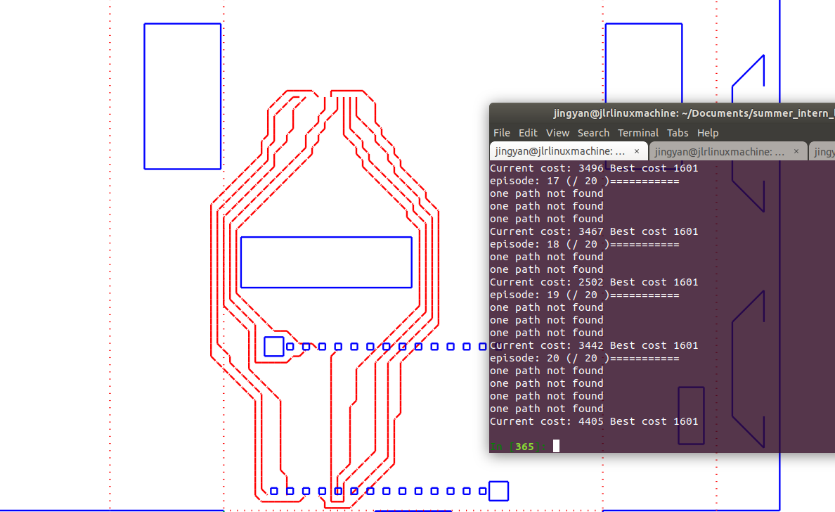 The script that does auto routing by given a single drawing file with arbitrary shape has been completed besides some clean up work. Moving to Approach A (import to eletrical design software and use existing auto-router) from this week.