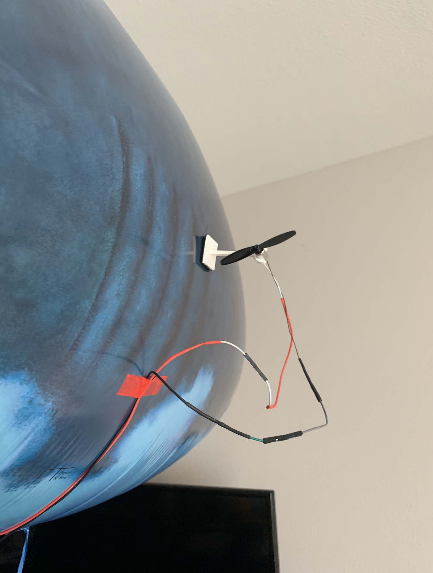Jiahao(Nick) Li blimp fly test motor distributionIn the previous test, the result shows that the turning ability of the configuration used for the shark robot is not good. The reason is the turning torque generated by two motors located beneath the balloon is not large enough.